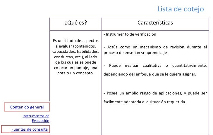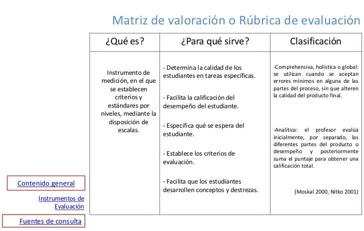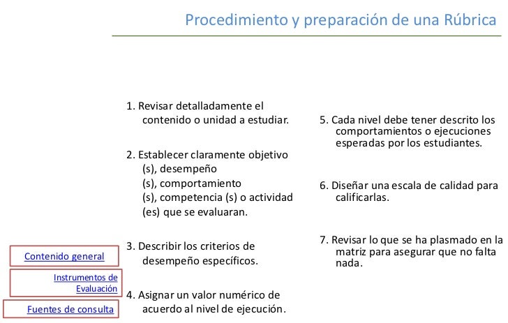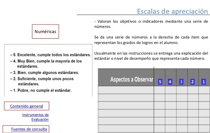 cada número. 5 4 3 2 1Contenido general Instrumentos de Evaluación Fuentes de
