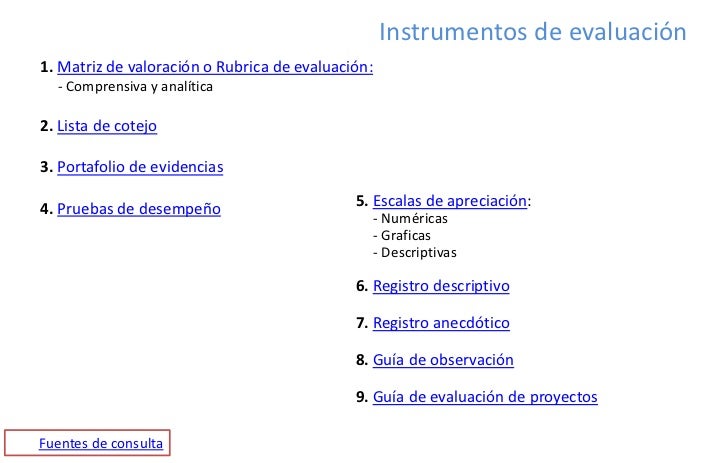 Instrumentos de • Conclusiones Evaluación Fuentes de consulta